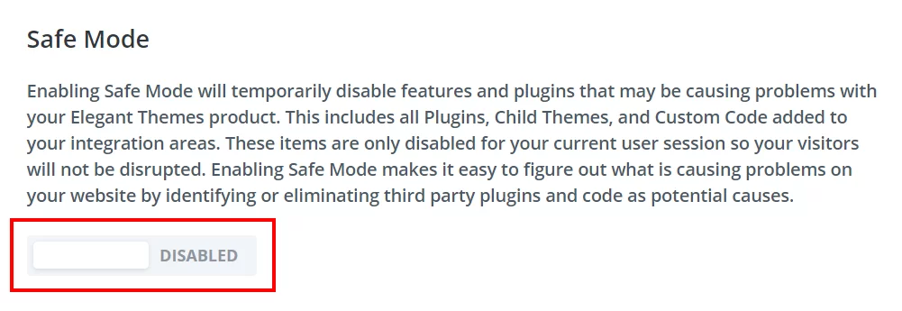 Divi’s Safe Mode is a useful diagnostic tool that temporarily disables third-party plugins and custom code. Activating Safe Mode can help determine if compatibility issues are causing the Builder to malfunction.